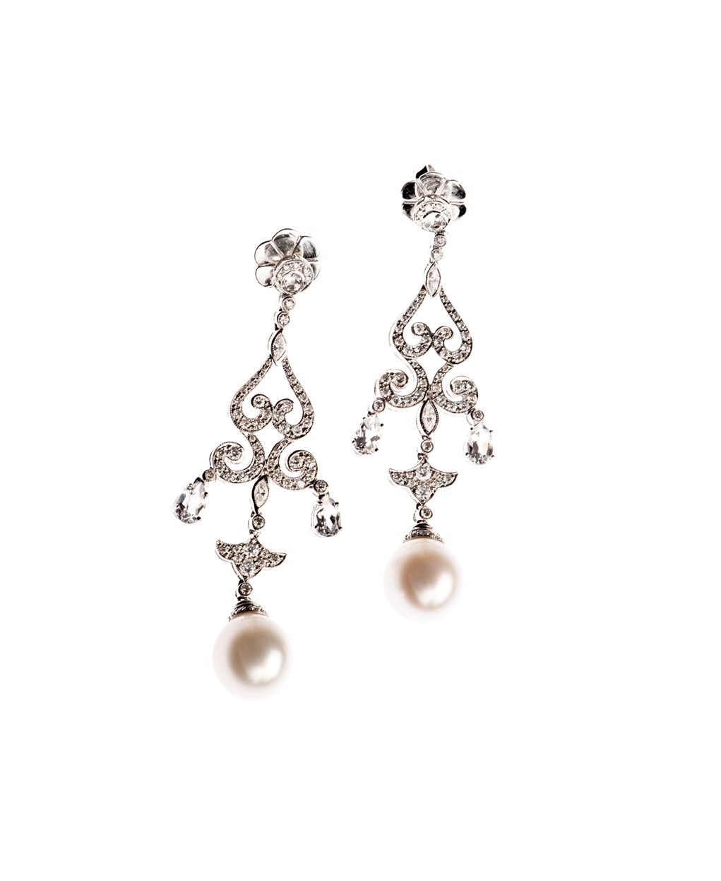 Art.nr: 09-3710. Vitguld 18K. "Art Deco" dia 1.59 ct G-H/si, South Sea pärlor 11 mm. Ursprungscertifikat. Pris: 69900:-.