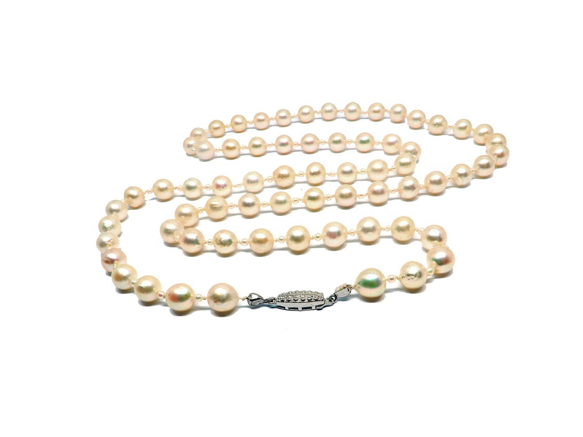 Art.nr: 94-697. Akoya vita pärlor 6-6,5 mm, trippel längd.