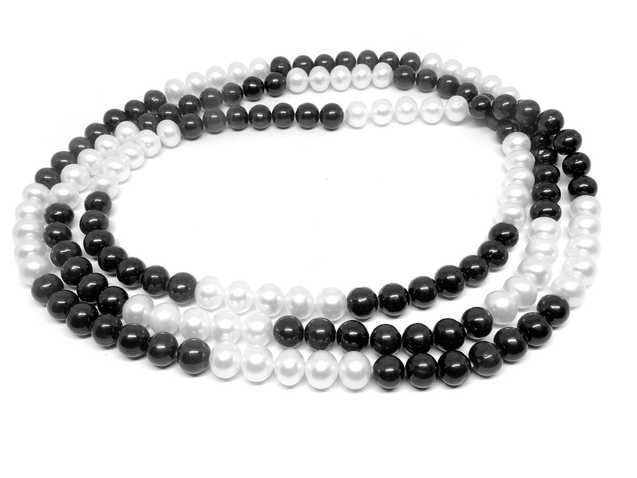 Collier med svarta och vita sötvatten pärlor. Pris: 5900:-.
