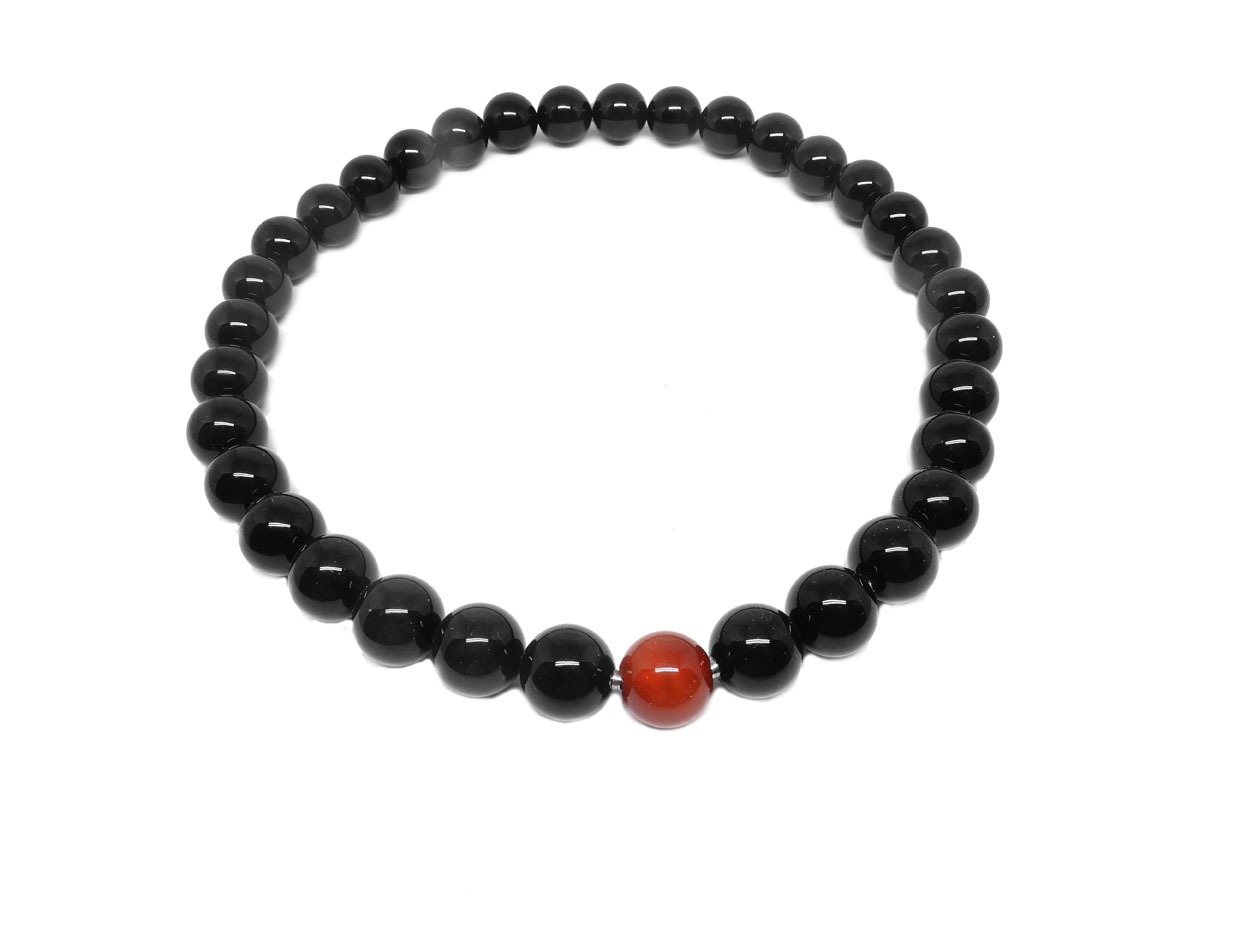 Art.nr: 07-989. Onyx 12mm samt bayounett lås i karneol. Pris: 2750:-
