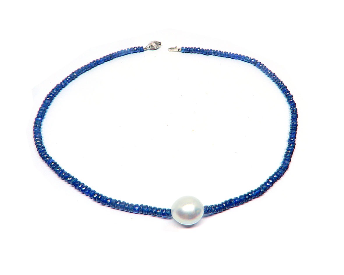 Art.nr: 18-76. Oslipade blå safirer samt South Sea pärla. Pris: 9900:-
