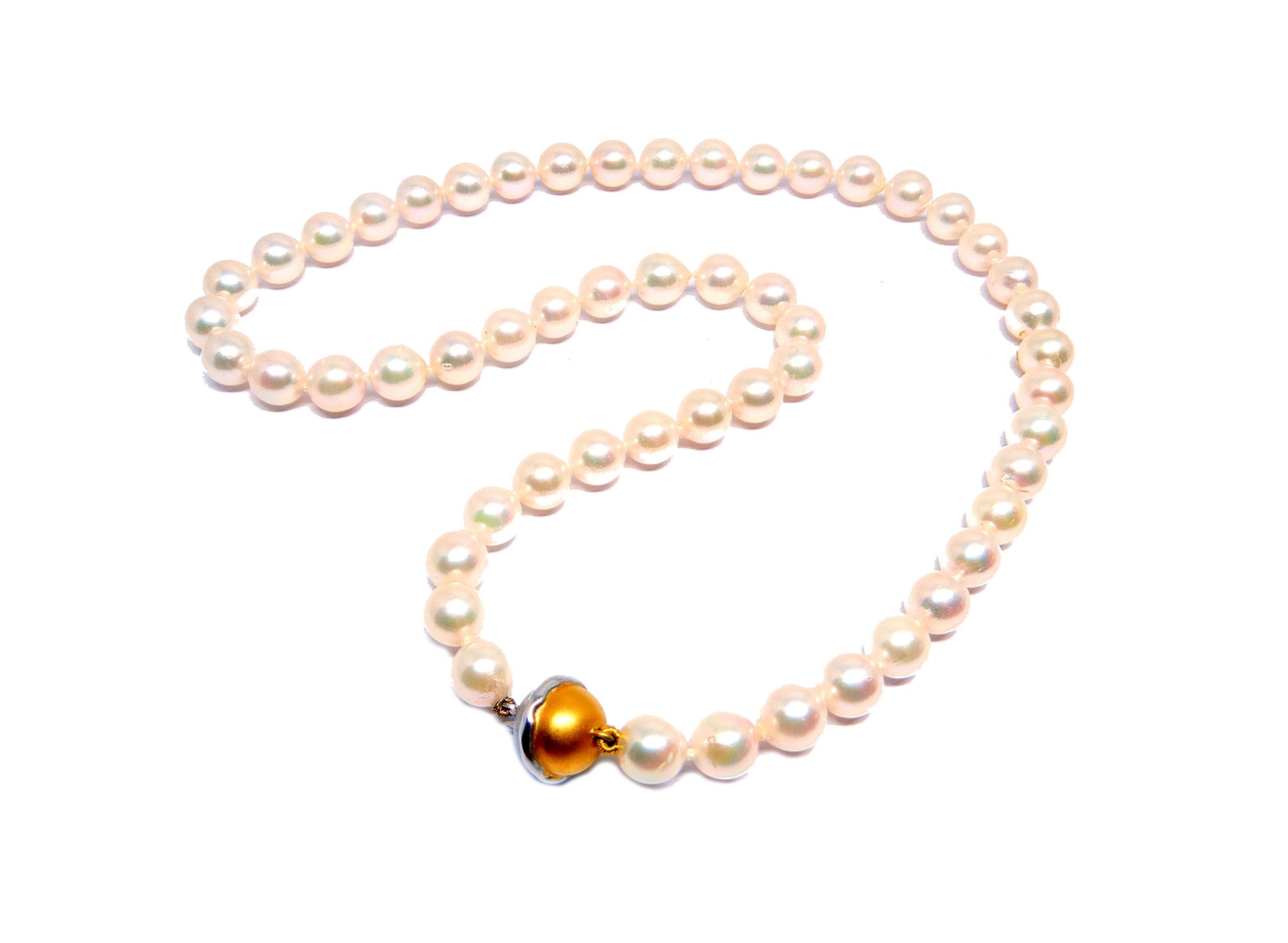 Art.nr: 83-567. Akoya pärlor 7-7,5 mm, lås i gulguld 18K.