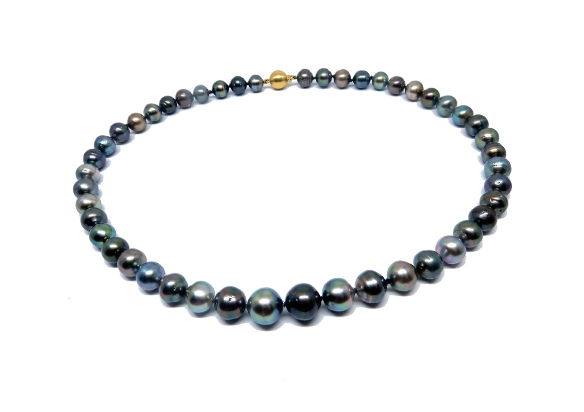 Art.nr: 16-807. Multicolor Tahiti pärlor 8,5-10,5 mm, lås i gulguld 18K.