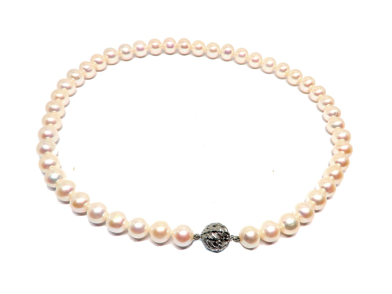 Collier med sötvatten pärlor 8,5-9,5 mm samt lås i silver 925. Pris: 5500:-