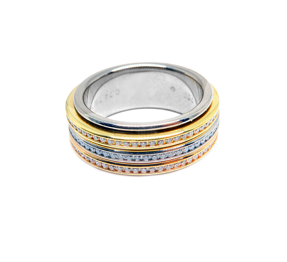 Art nr: 044271. Rosé/gul/vitguld 18K, 186 br tot 0.74ct TW/VS. "Girello".
