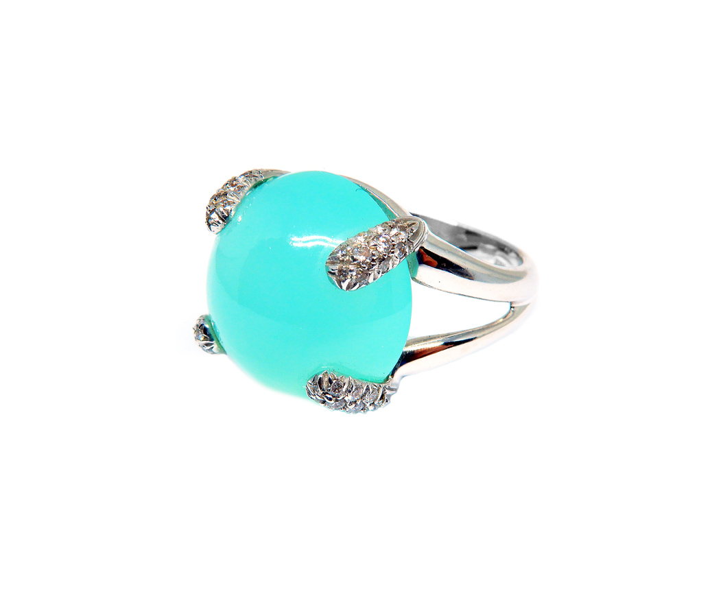 Art nr: 064496. Vitguld 18K, aqua kalcedon 3.1ct, dia 0.27ct TW/VS.