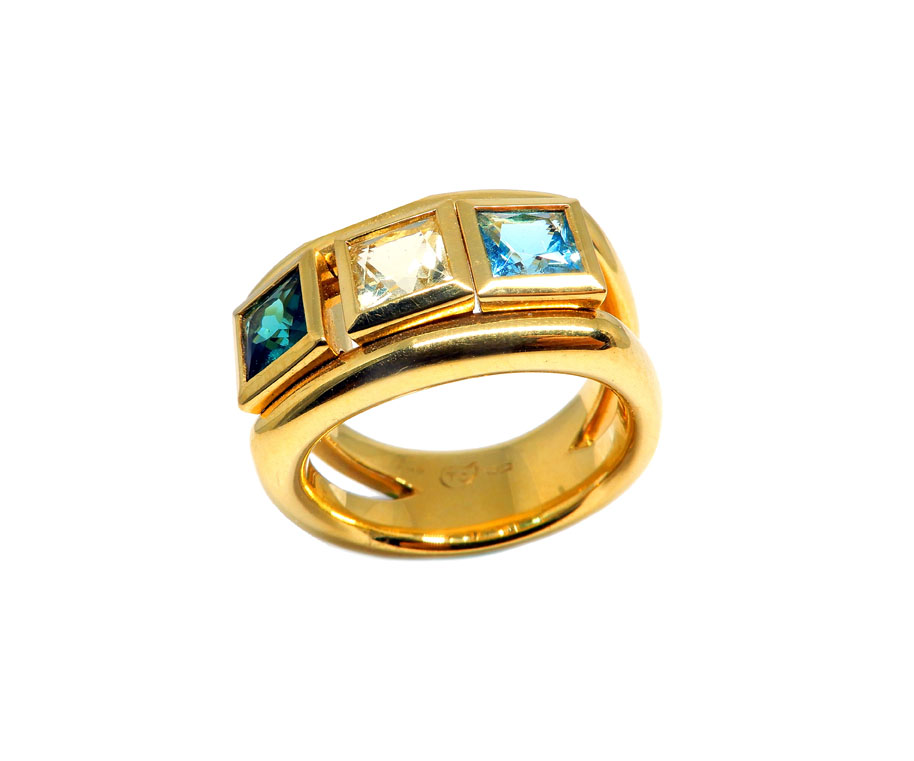 Art nr: 074584. Rödguld 18K, lemon kvartz, blå topaz, turmalin