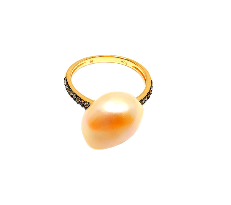 Art nr: 094775. Rödguld 18K, Sötvatten pärla, bruna dia 0.12 ct.
