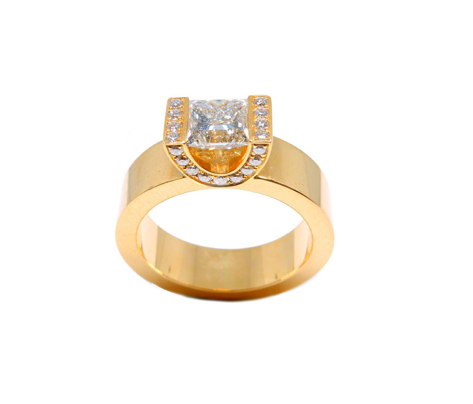 Art nr: 155166. Rödguld 18K, dia princess 1.00ct, G/VVS1, sidosternar 0.20ct TW/VS.