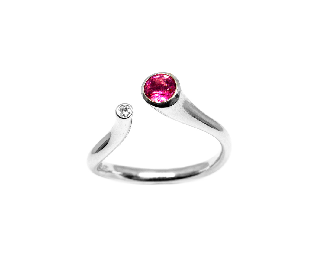 Art nr: 175265. Vitguld 18K, dia 0.02ct TW/SI, rosa turmalin.