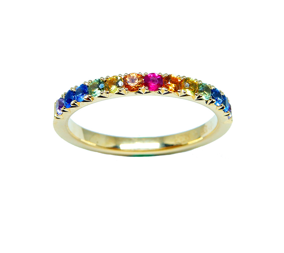 Art nr: 195298. Rödguld 18K, 1 rubin, 12 safirer. "Regnbåge".